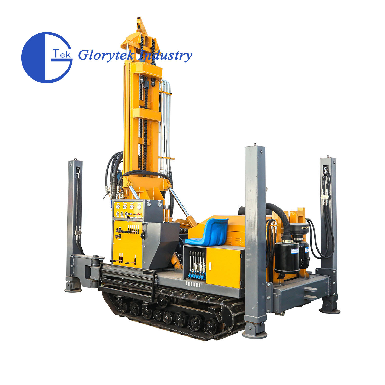 *GL180R water well drill rig with rubber tracks.This model can drill max. 180m deepth.